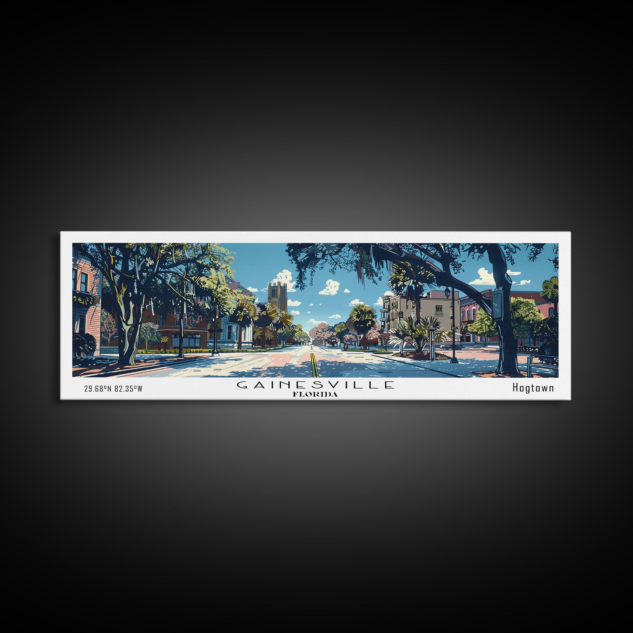 Gainesville Florida Panoramic Painting, Mid Century Modern Framed Canvas Print, Retro Pop Art Travel Poster, Home Wall Decor