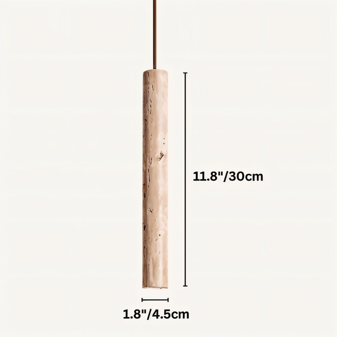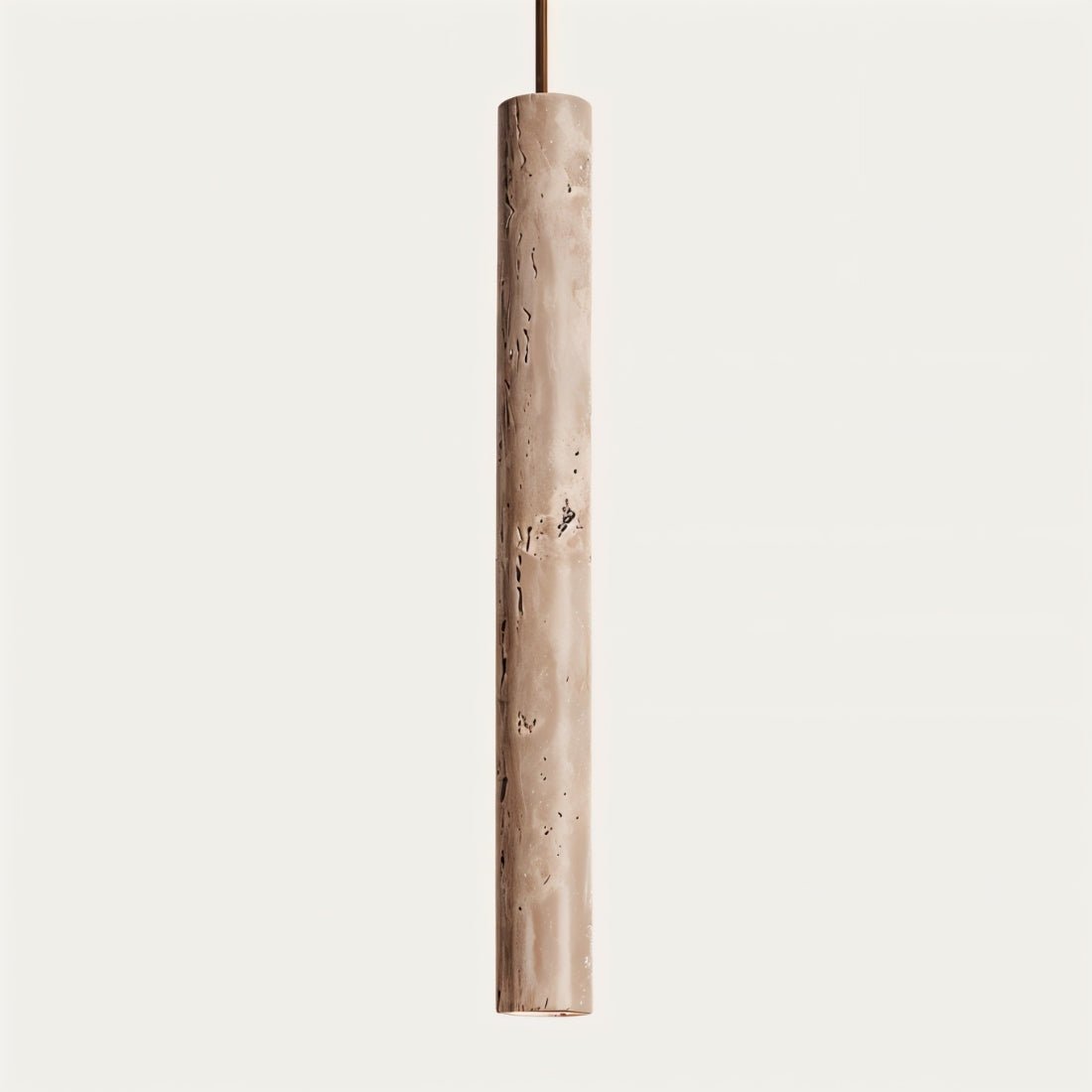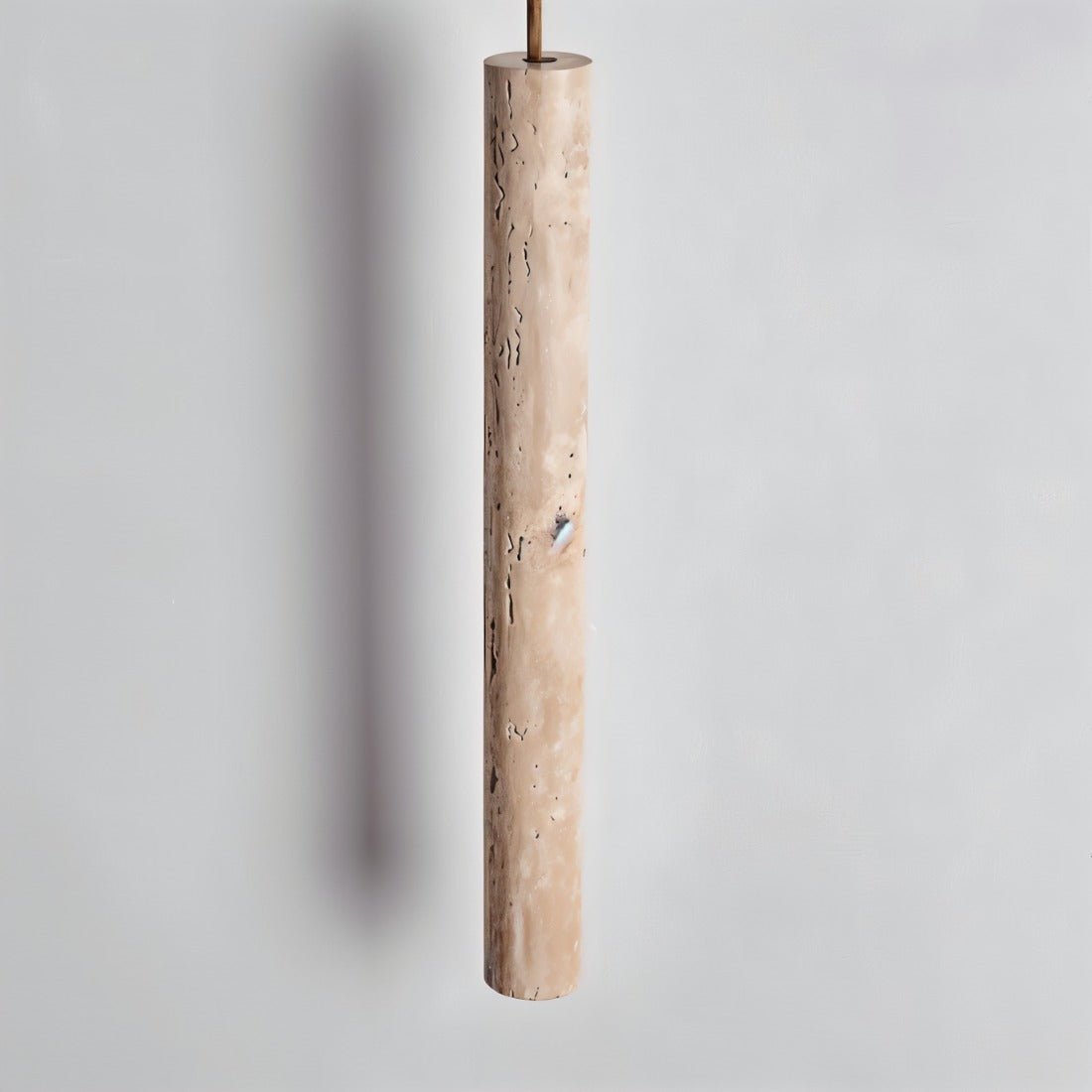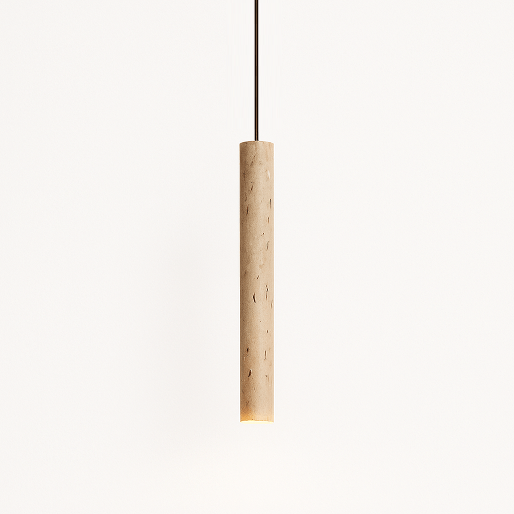 The Marus Pendant Light is a sleek cylindrical light fixture crafted from yellow travertine, highlighting its natural textures and organic variations. Its minimalist design complements modern and Wabi-Sabi interiors, providing soft, directional lighting. Ideal for dining areas, kitchen islands, or bedside installations, this light fixture adds warmth and sophistication to any space.