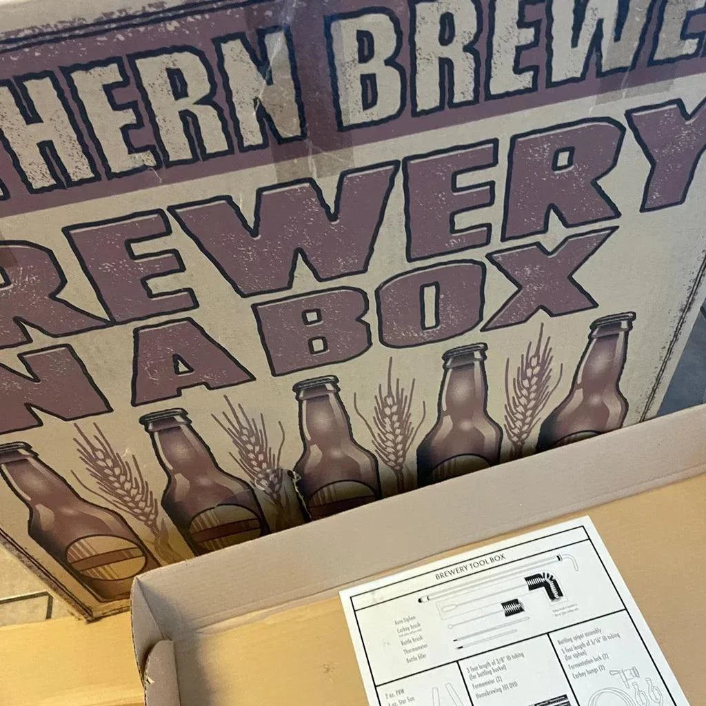 NORTHERN BREWER Deluxe Homebrew Starter Kit. This product was found in a storage unit this appears to be new unopened packaging box opened bottles look dusty from storage and the white bucket is broke but can easily be replaced for a couple dollars:)