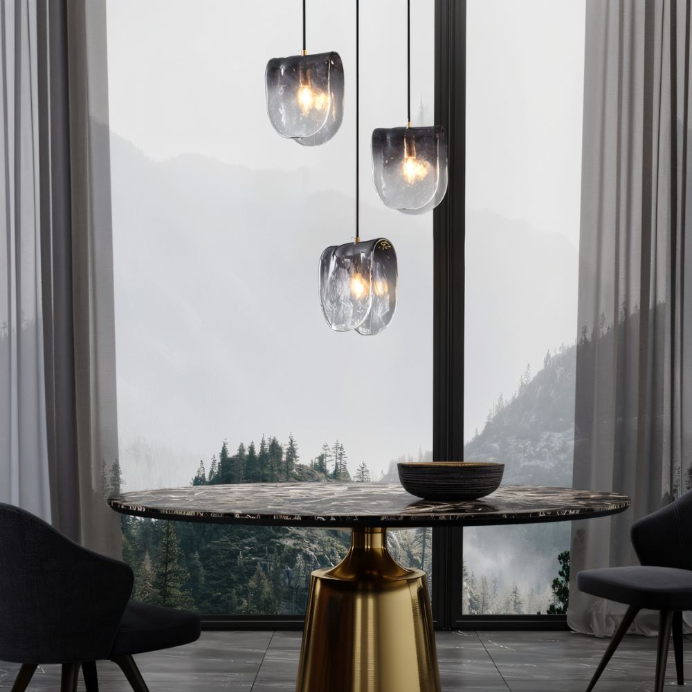 The Nuppu Pendant Light features a captivating design with unique, organically shaped glass shades in a gradient finish. This stylish light fixture creates a warm and inviting atmosphere, perfect for illuminating dining rooms, kitchens, and living spaces. Nuppu Pendant Light is crafted from a combination of copper and glass, adds a touch of modern elegance to any interior.
