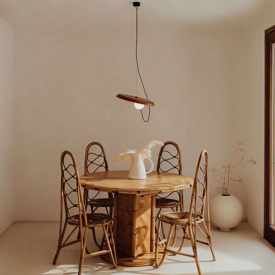 The Uri Pendant Light is not your typical pendant light when compared to conventional lights used as decor. The Dynamic and slick design of the pendant light is supported by a wire with a steel disc to which the lampshade is magnetically linked. In this manner, you can experiment with the illumination by moving the lampshade to various positions of the lampshade. The Uri's beauty is enhanced by the rhythm and dynamism it exhibits with its design through the use of wires and thread. This quirky pendant light, which has a retro design, offers the best lighting for homes, restaurants, and cafes.