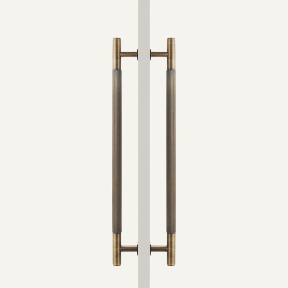 Vezil Double-Sided Pull is a stylish blend of vintage charm and modern design. The striped linear pattern not only looks elegant but also ensures a comfortable grip for easy door handling. Crafted with durability in mind, this pull bar is suitable for both homes and businesses. Upgrade your space with this timeless piece that effortlessly combines classic aesthetics with practical functionality.