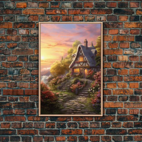 Cottage Landscape Art, Nature Art Print, Countryside Art, Canvas Print, Wall Art, Vertical Art, Landscape Print, Cozy Gift, Home Decor Print