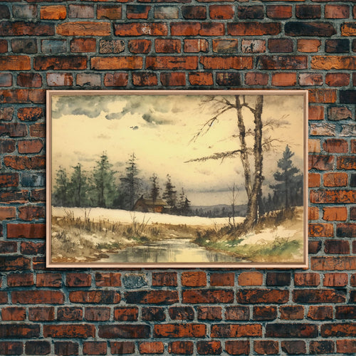 Cottage Oil Painting Framed Canvas Print | Rustic Wall Art | Vintage Muted Print | Farmhouse | Boho Style | Minimalist