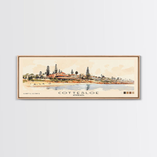 Cottesloe, Australia Panoramic Print, Vacation Gift, Australia Wall Art, Beach Painting, Beach Decor, Large Wall Art, Wood Frame Art