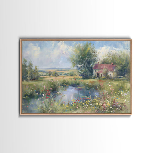 Cottagecore Farmhouse Print, Framed Wall Art, Wood Frame Art, Metal Print, Wall Art, Large Art, Landscape Painting, Country Decor