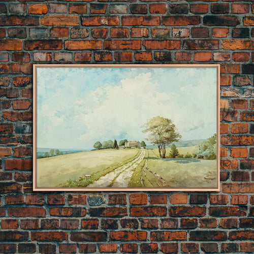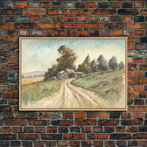 Country Roads Wall Art, Framed Canvas Print, Dirt Roads, Primitive Farmhouse Decor, Watercolor Painting, Rustic Muted Colors Wall Art