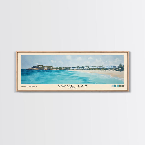 Cove Bay, Anguila Panoramic Beach Print, Vacation Gift, Anguila Wall Art, Framed Canvas Print, Framed Beach Painting