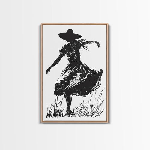 Country Girl Silhouette Art Print, Framed Canvas Western Decor, Vintage Cowgirl Artwork, Rustic Southwest Wall Art for Home