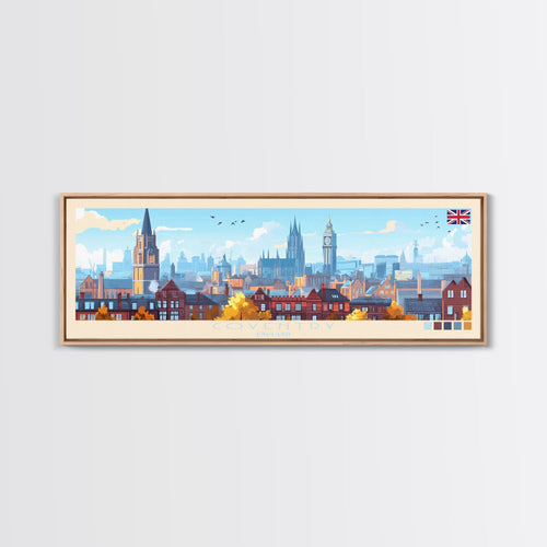 Coventry United Kingdom Wall Art, Panoramic Travel Poster, Panoramic Framed Canvas Print, City Wall Art, Wall Hanging Home Decor, Travel Art