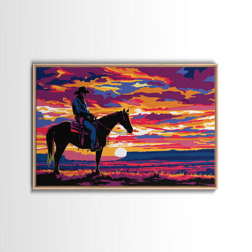 Cowboy and Horse Desert Scene Art - Framed Canvas Print, Western Living Room Decor, Cowboy Wall Art, Desert Home Decoration
