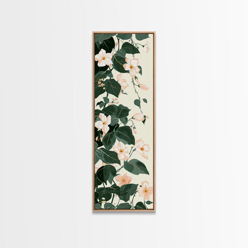 Creamy White Blossoms with Deep Green Leaves Overlapping on a Soft Background Ukiyo-e Art Japanese Framed Canvas Print Skinny Tall Art