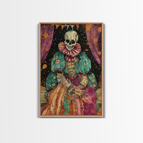 Creepy Skeleton Clown Framed Canvas Print, Cottagecore Halloween Mashup, Spooky Vibes Halloween Decor