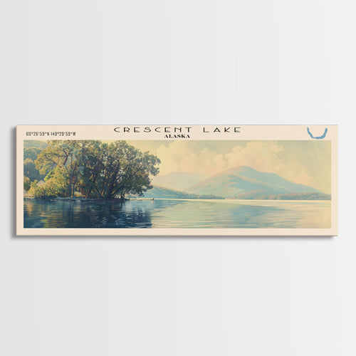 Crescent Lake Alaska Framed Canvas Print, Pop Art Panoramic Travel Poster, Midcentury Modern, Wall Art, Scenic Nature Painting, Bedroom Decor, Living Room Art