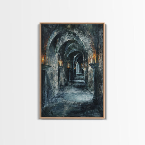 Dark Gothic Hallway Halloween Art, Spooky Hallway, Haunted Passage, Creepy Architecture, Gothic Decor, Framed Canvas Print