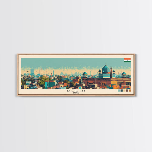 Delhi, India Panoramic Canvas Print, Delhi, India Painting, India Art, Delhi Travel Poster, Travel Art, Guest Room Painting
