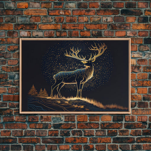 Deer made of stars, reflection stag, framed canvas print, unique wall art, starry night stag