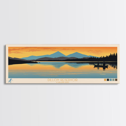 Dillon Reservoir Colorado Framed Canvas Print, Midcentury Modern Panoramic Wall Art, Living Room Decor, Pop Art, Travel Poster Art, Scenic Nature Painting
