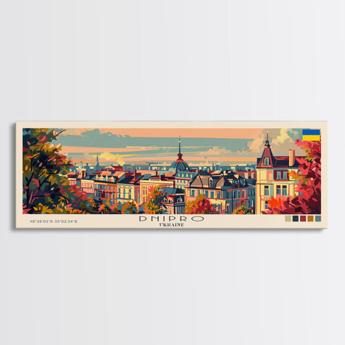 Dnipro Ukraine Wall Art, Panoramic Travel Poster, Panoramic Framed Canvas Print, City Wall Art, Wall Hanging Home Decor, Travel Art