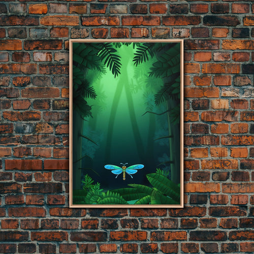 Dragonfly Wall Art, Nature Wall Decor, Woods, Trees, Green Art, Minimalist Print, Wall Decor, Canvas Print, Wall Art, Framed Canvas