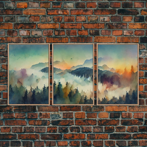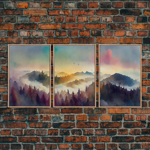 Dramatic Watercolor Sunset Landscape Abstract, Landscape Art, 3 Piece Canvas Decor, 3 Piece Wall Art, Ready To Hang Canvas Prints