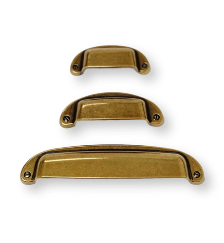 Drawer Cup Pull "Capri" in Antique Brass - Brass Cabinet Hardware