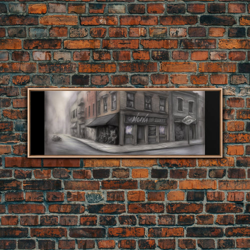 Dystopian City Canvas Print, Buildings, Man On Street, Urban Art, Large Urban Art Print, Wall Decor, Panoramic, Wall Art, Canvas Print