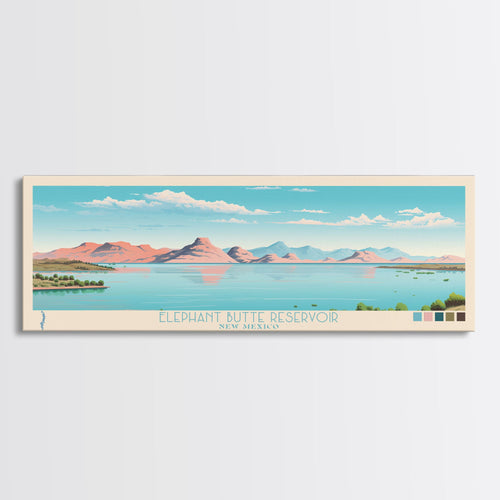Elephant Butte Reservoir New Mexico Framed Canvas Print, Panoramic Wall Art, Midcentury Modern, Pop Art, Living Room Decor, Travel Poster, Lake Art