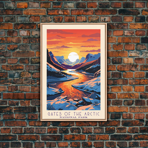 Gates of the Arctic National Park Travel Poster Art, Canvas Print Wall Art, Alaska Travel Art, Midcentury Modern Travel Decor, MCM Wall Art