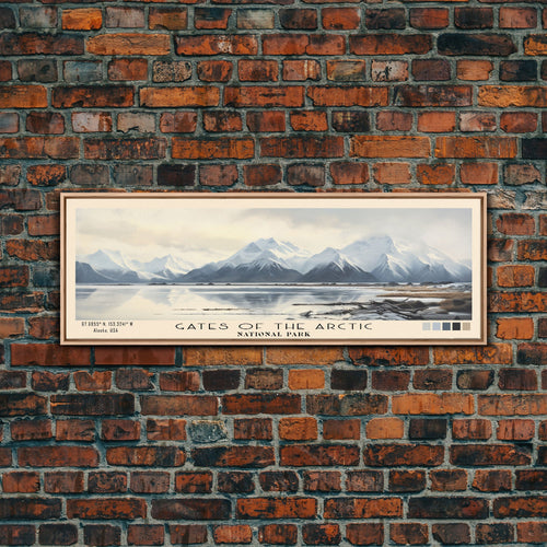 Gates Of The Arctic National Park Panoramic Travel Art, National Park Print, Minimalist Travel Art, Subdued Watercolor Painting Panoramic
