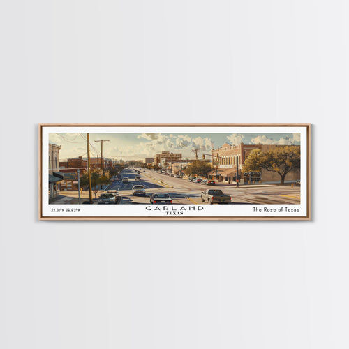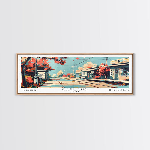 Garland Texas Panoramic Painting, Mid Century Modern Framed Canvas Print, Retro Pop Art Travel Poster, Wall Art, Home Decor, Office Art