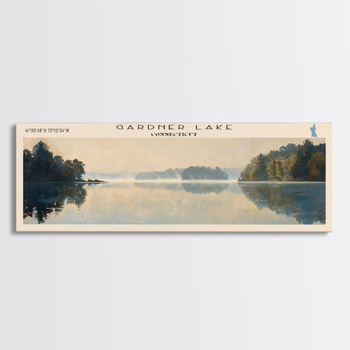 Gardner Lake Connecticut Framed Canvas Print, Panoramic Wall Art, Midcentury Modern, Pop Art, Bedroom Decor, Travel Poster, Lake View, Artistic Decor