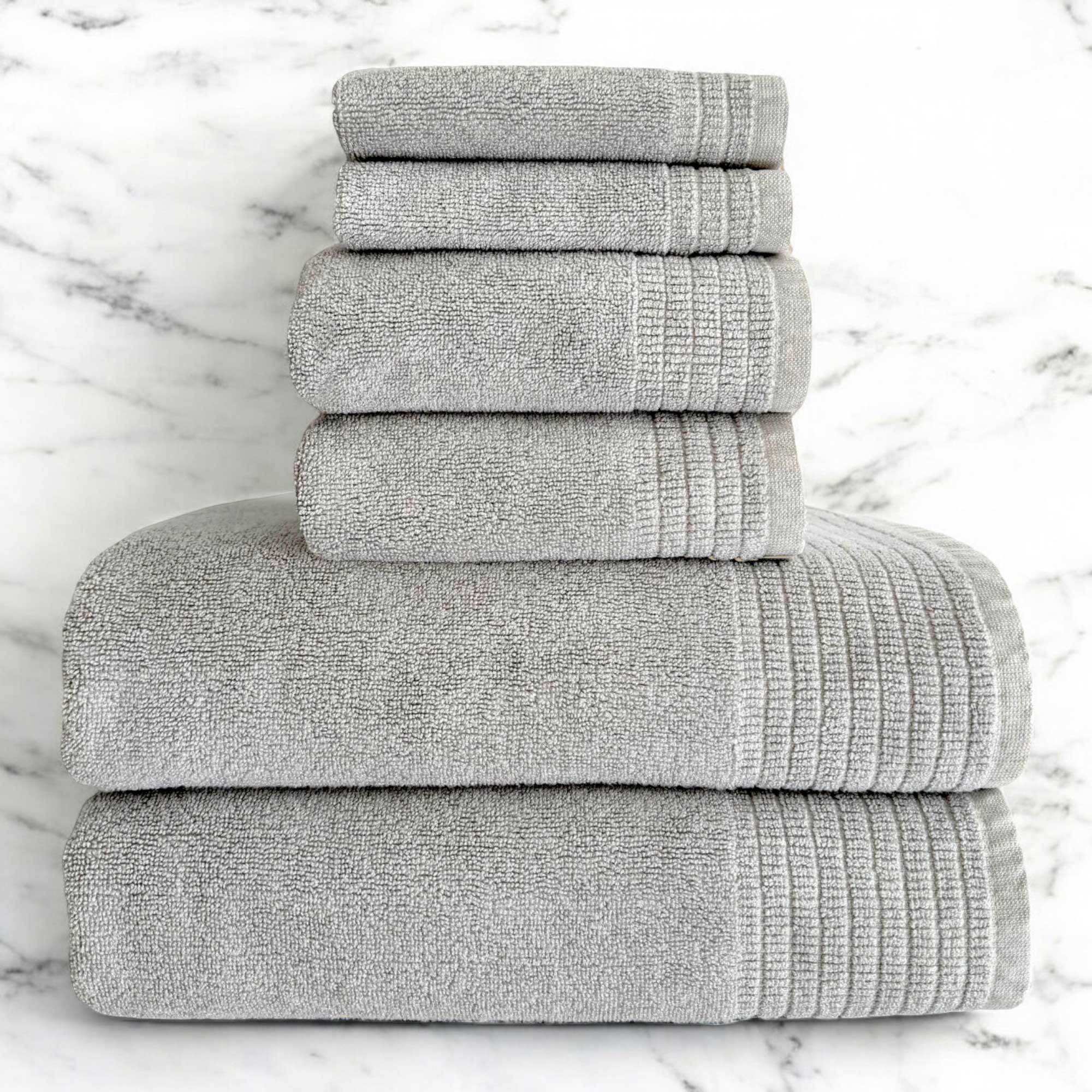 Wrap yourself in the indulgent softness of our oversized 6pc Bath Towel Sets, designed to bring the feel of a five-star spa into your own bathroom. Crafted with a plush blend of 60% Bamboo pile and 40% Cotton webbing, they're incredibly absorbent, gentle on skin, and built to last. The generous bath, hand towels and washcloths offers comfort, a modern design and quick-drying appeal. With no-shrink edging and a cloud-like weight, these bathroom towels deliver the perfect balance of coziness and performance, and stays perfectly-shaped, wash after wash. 650GSM