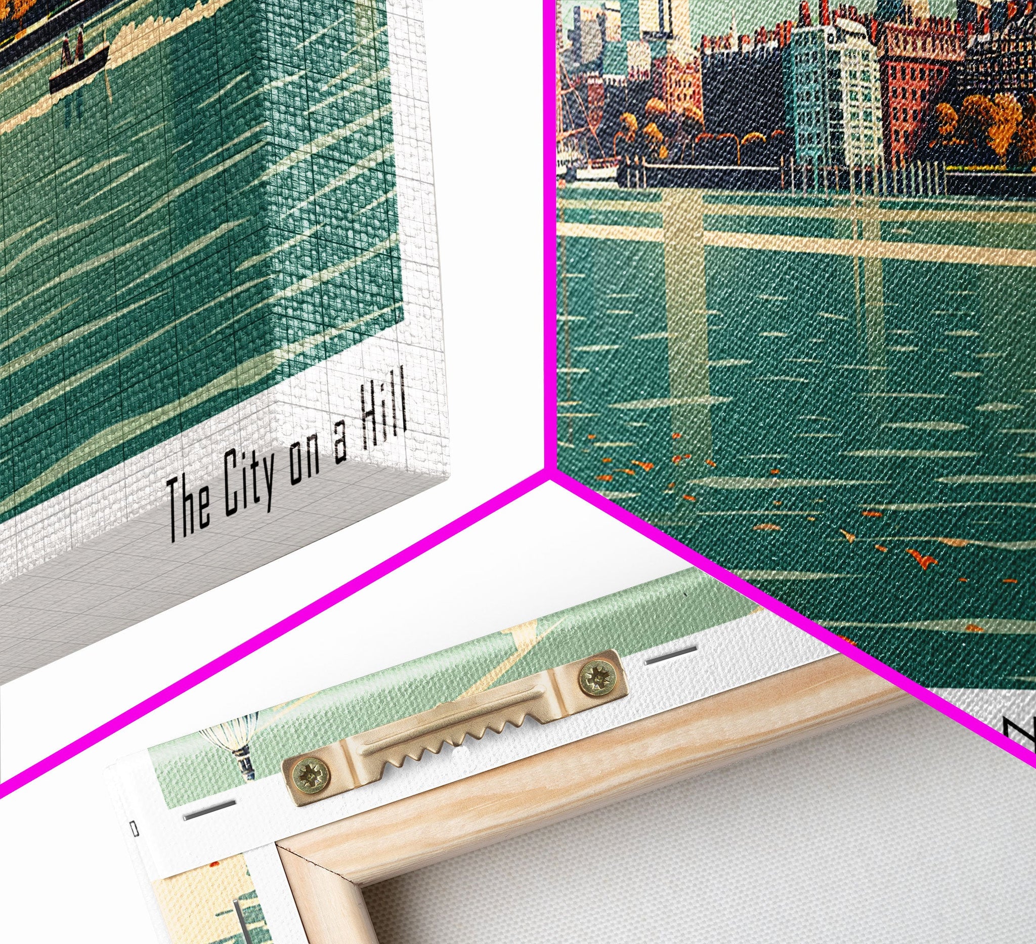 • Load image into Gallery viewer, Boston Massachusetts Panoramic Painting, Framed Canvas Print, Mid Century Modern Wall Art, Retro Pop Art Travel Poster, Home Decor, City Art