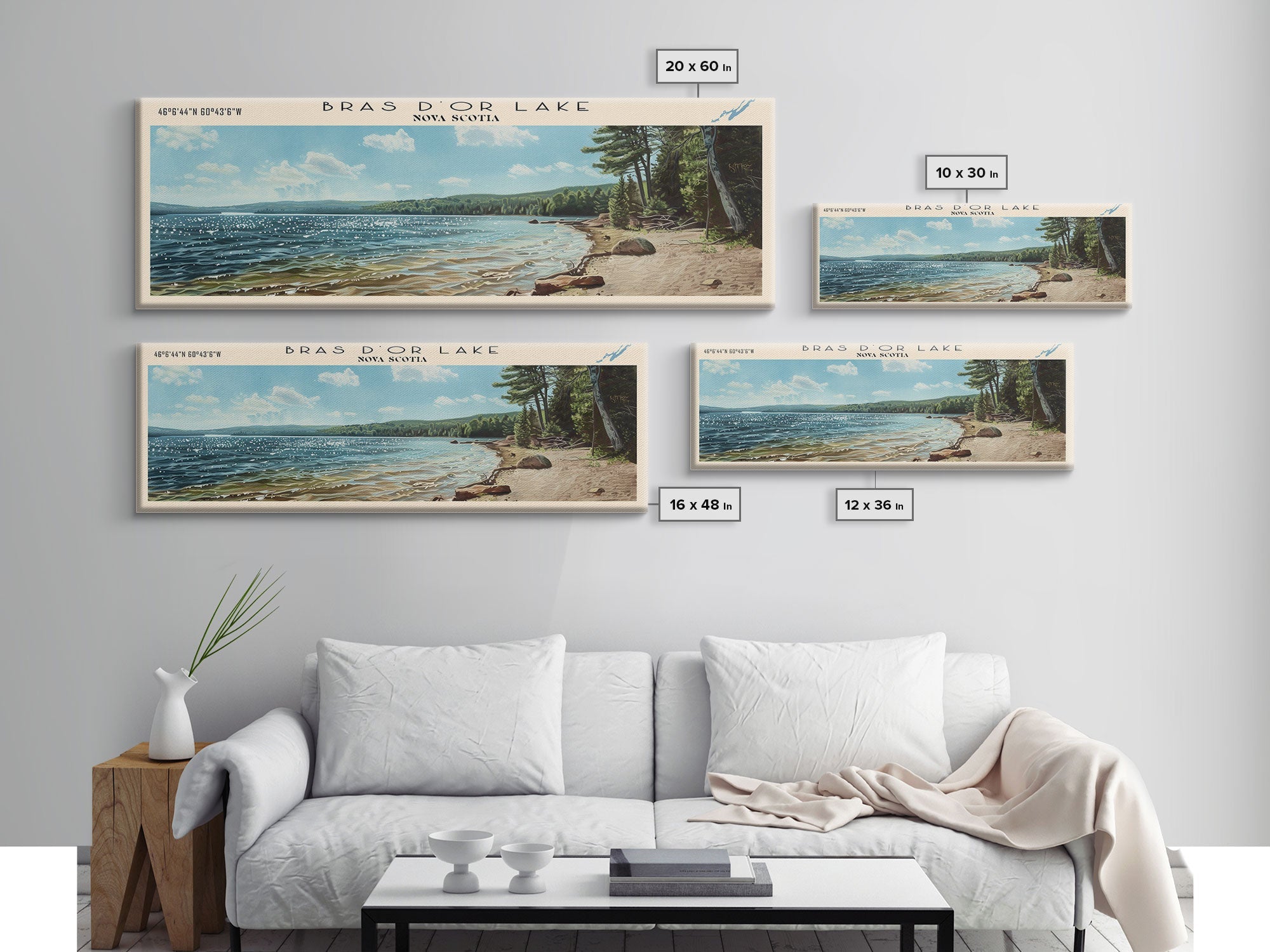 Bras d'Or Lake Framed Canvas Print, Panoramic Lake House Decor, Wall Art, Travel Poster, Rustic Lake Painting, Home Decor