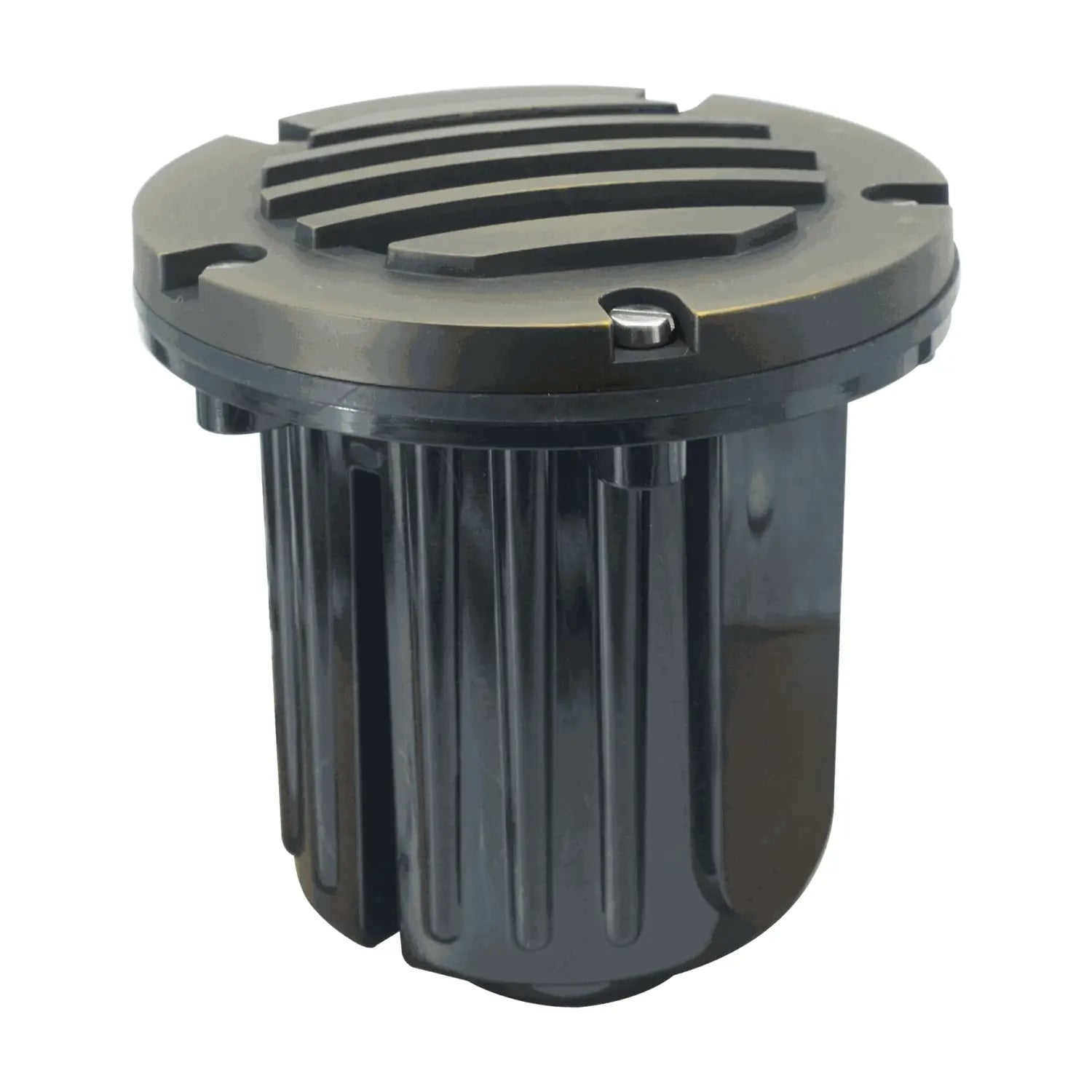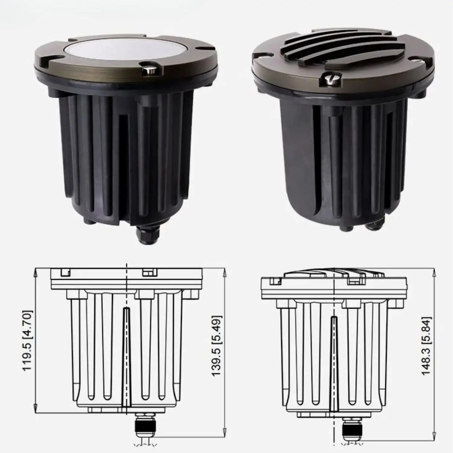 Brass and PVC in-ground lights compatible with MR16 lamps, ideal for landscape lighting use.