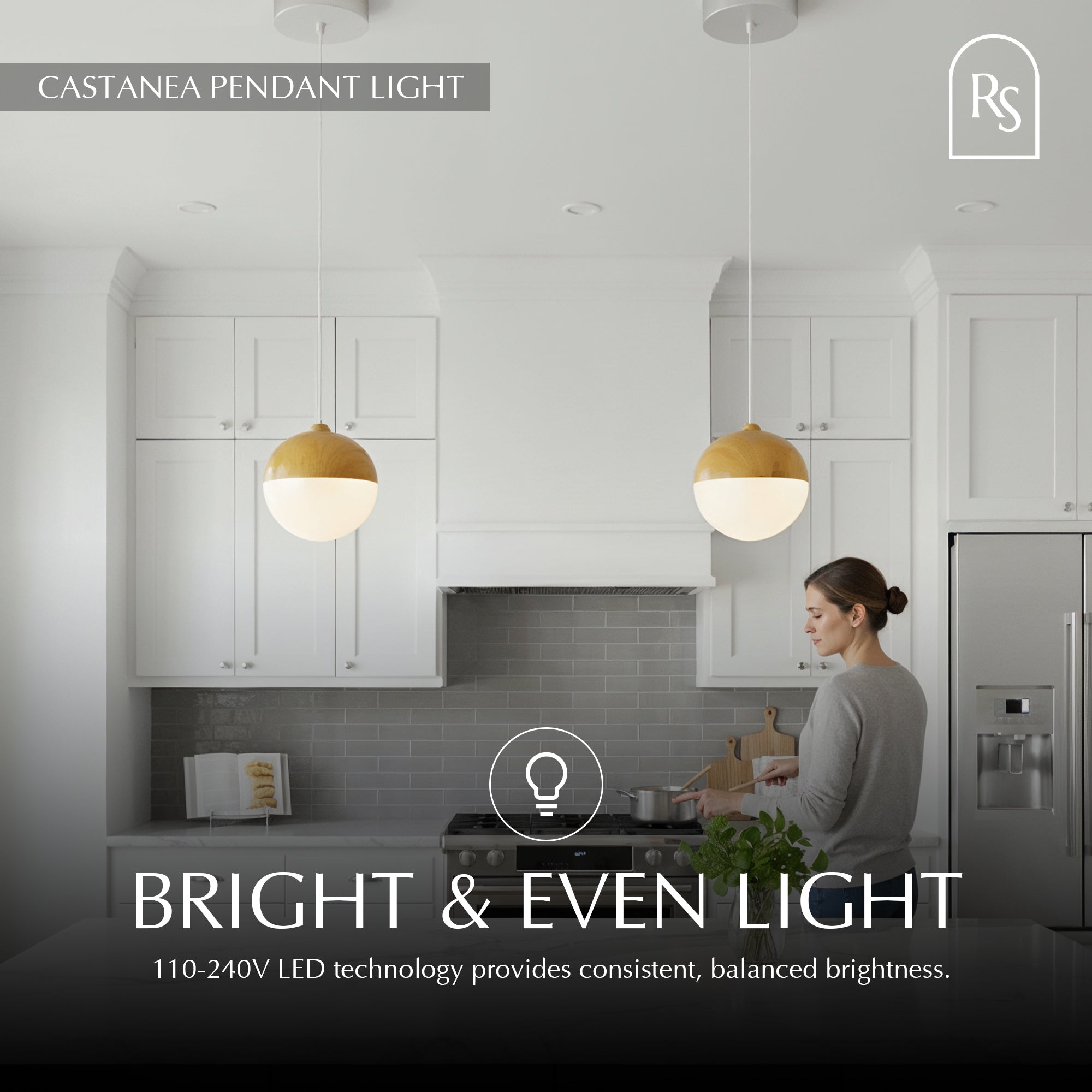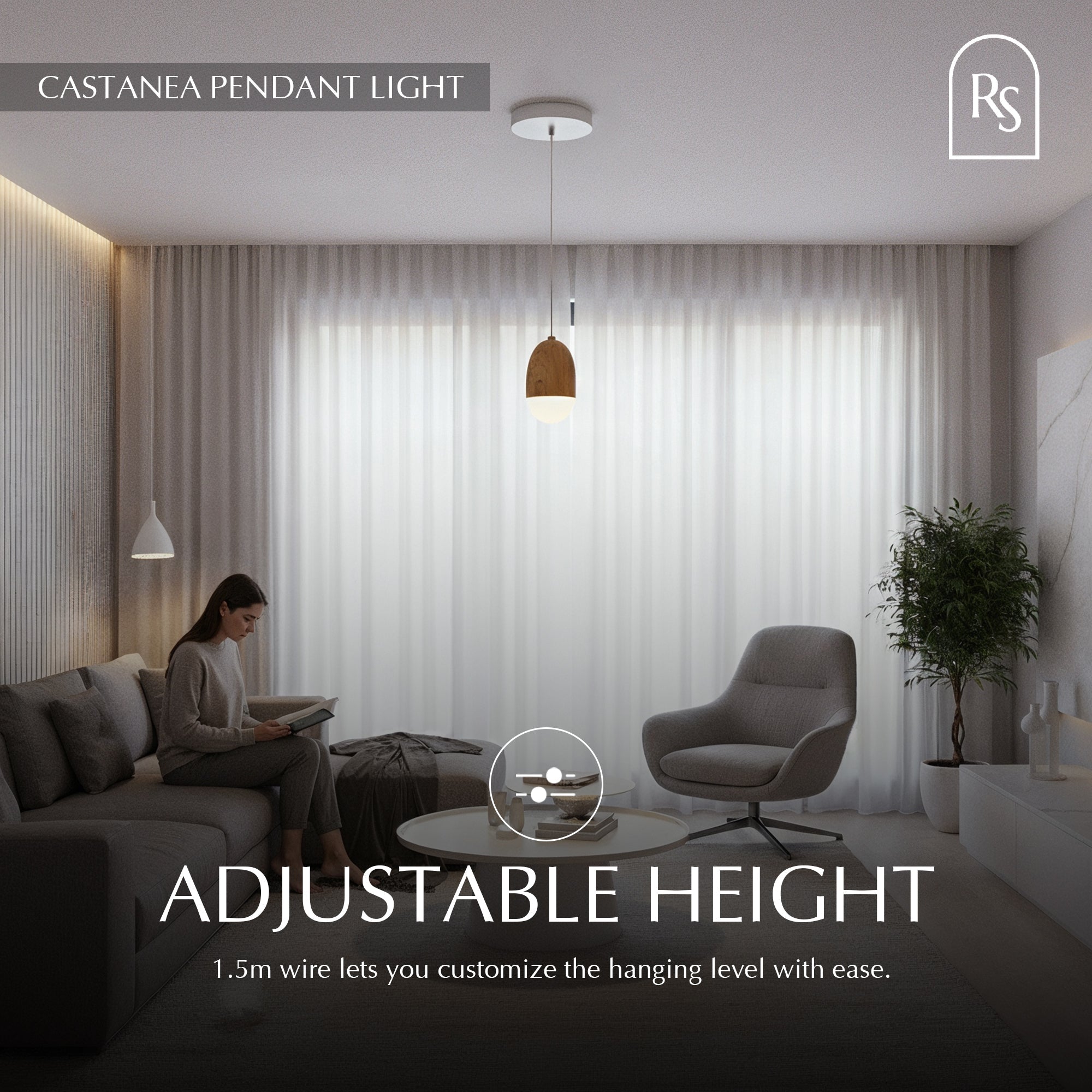 The Castanea Pendant Light will add elegance and superior lighting to your space. This refined and beautiful series, Castanea has a sturdy wrought iron lamp body with a faux pinewood laminate exterior that can create a romantic ambiance, ideal for any setting with its bright and easy-to-maintain frosted glass lampshade. The use of contemporary design and lighting helps the area feel spacious. It would fit in well in modern houses as well as a professional setting like a lobby, restaurant, or office.
