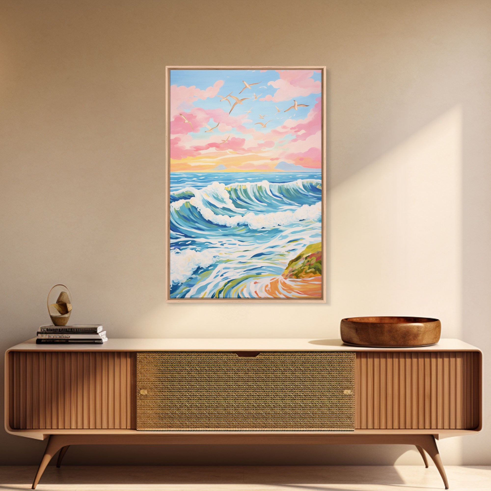 Colorful Sunset Wall Art, Beach Wall Print, Seascape Art, Nature Print, Canvas Print, Wall Art, Vertical Art, Beach House Art, Travel Print