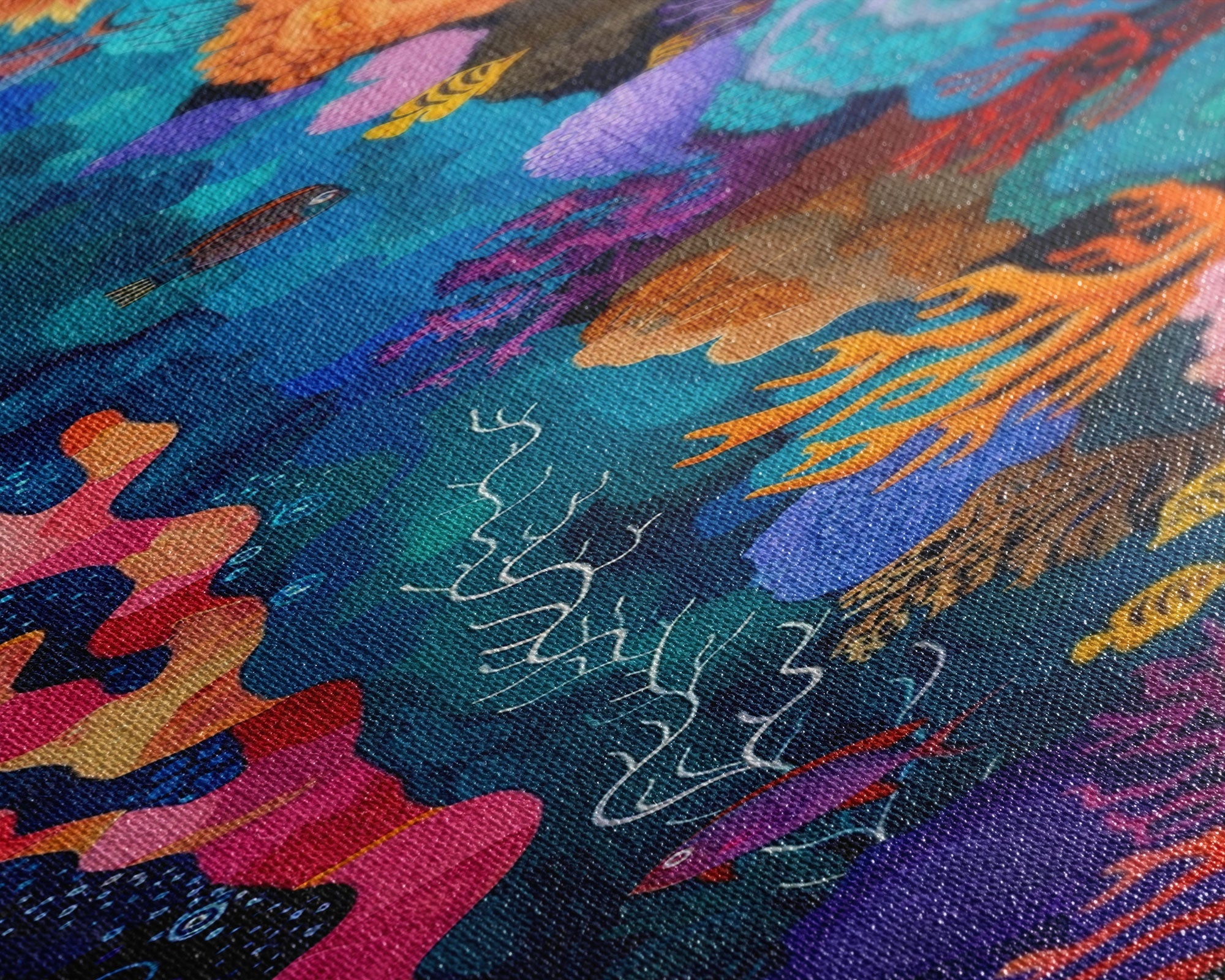 Colorful Underwater Art Print, Vibrant Wall Art Framed on Canvas, Black Light Poster, Fish Poster Art, Vertical Canvas Art, Living Room Art