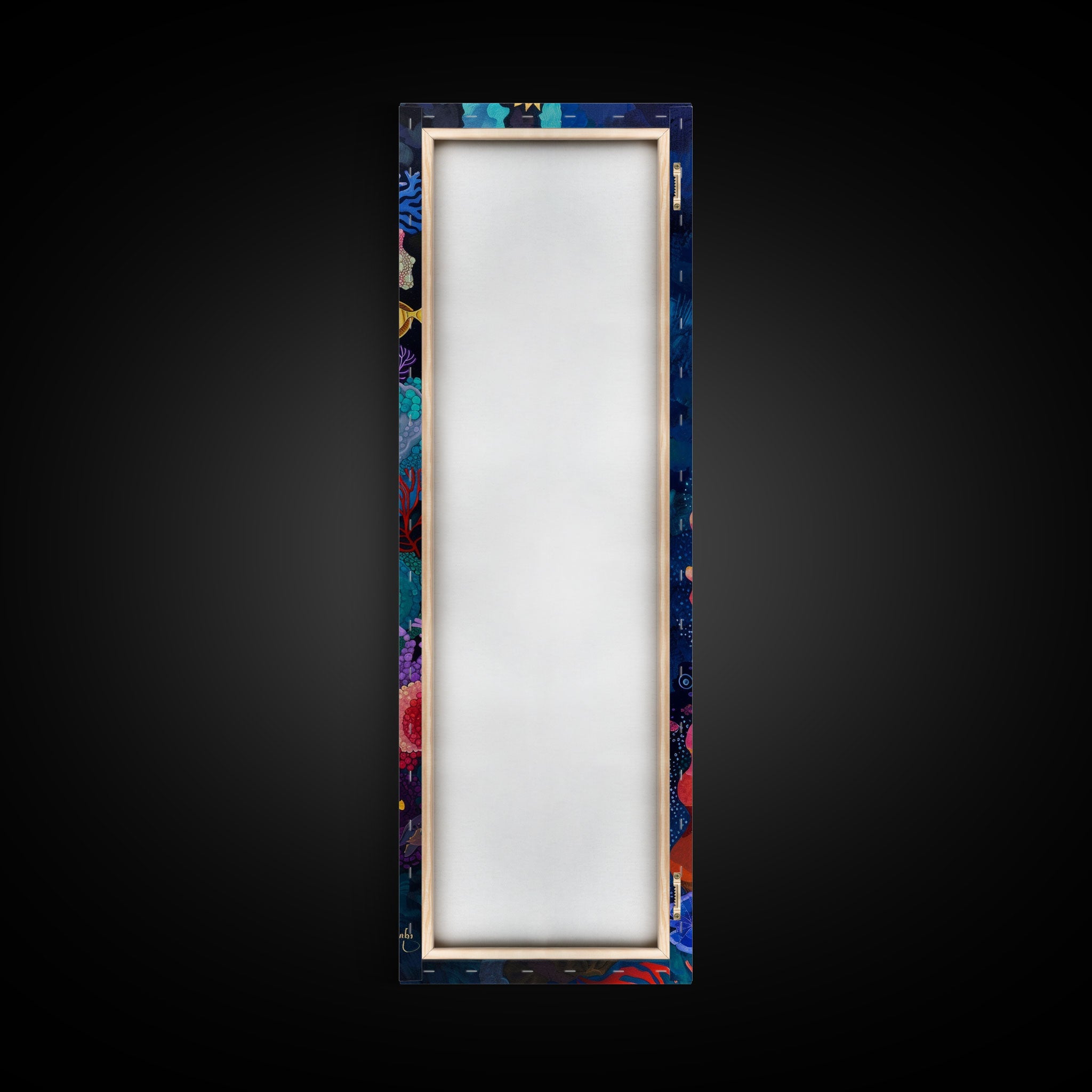 • Load image into Gallery viewer, Colorful Underwater Art Print, Vibrant Wall Art Framed on Canvas, Black Light Poster, Fish Poster Art, Vertical Canvas Art, Living Room Art