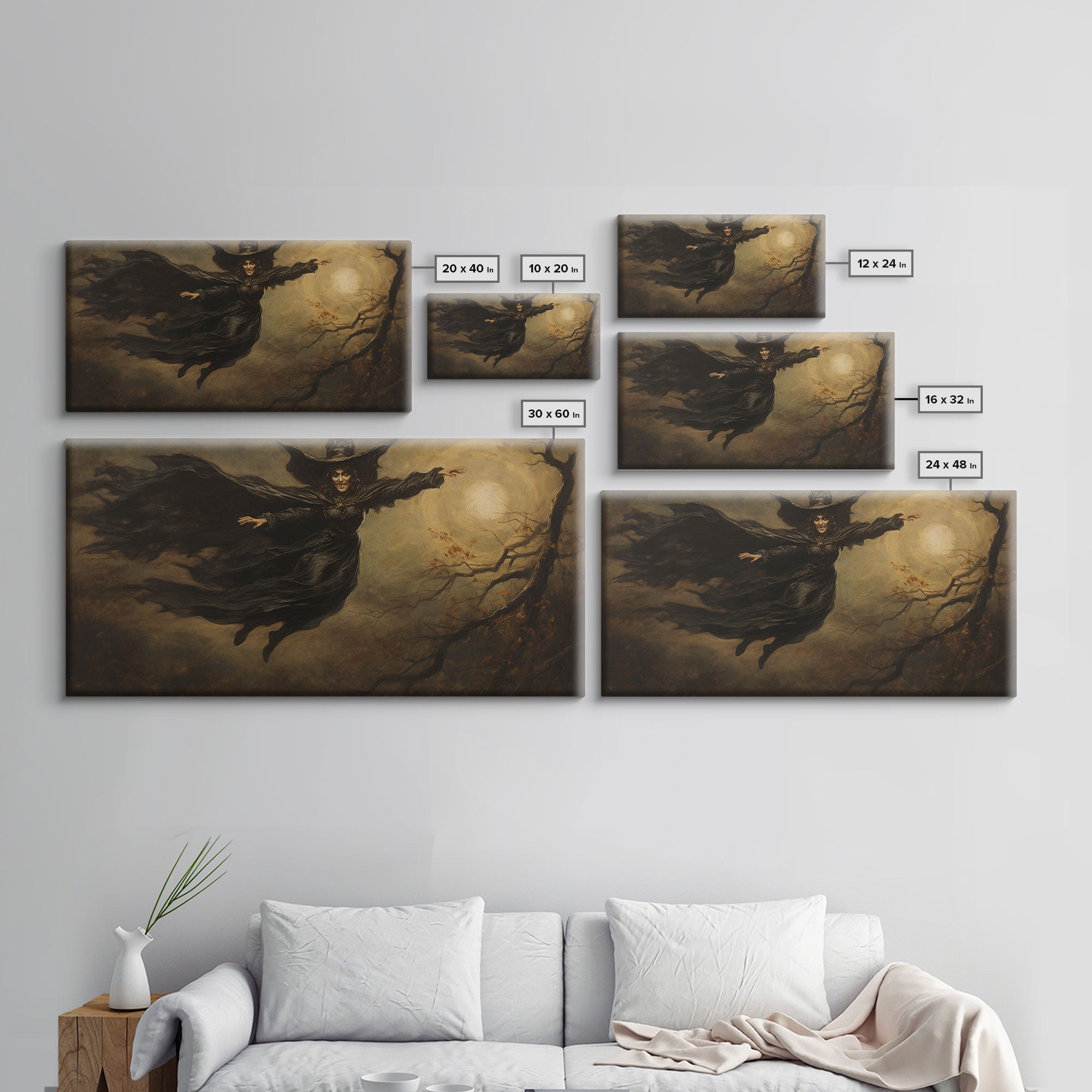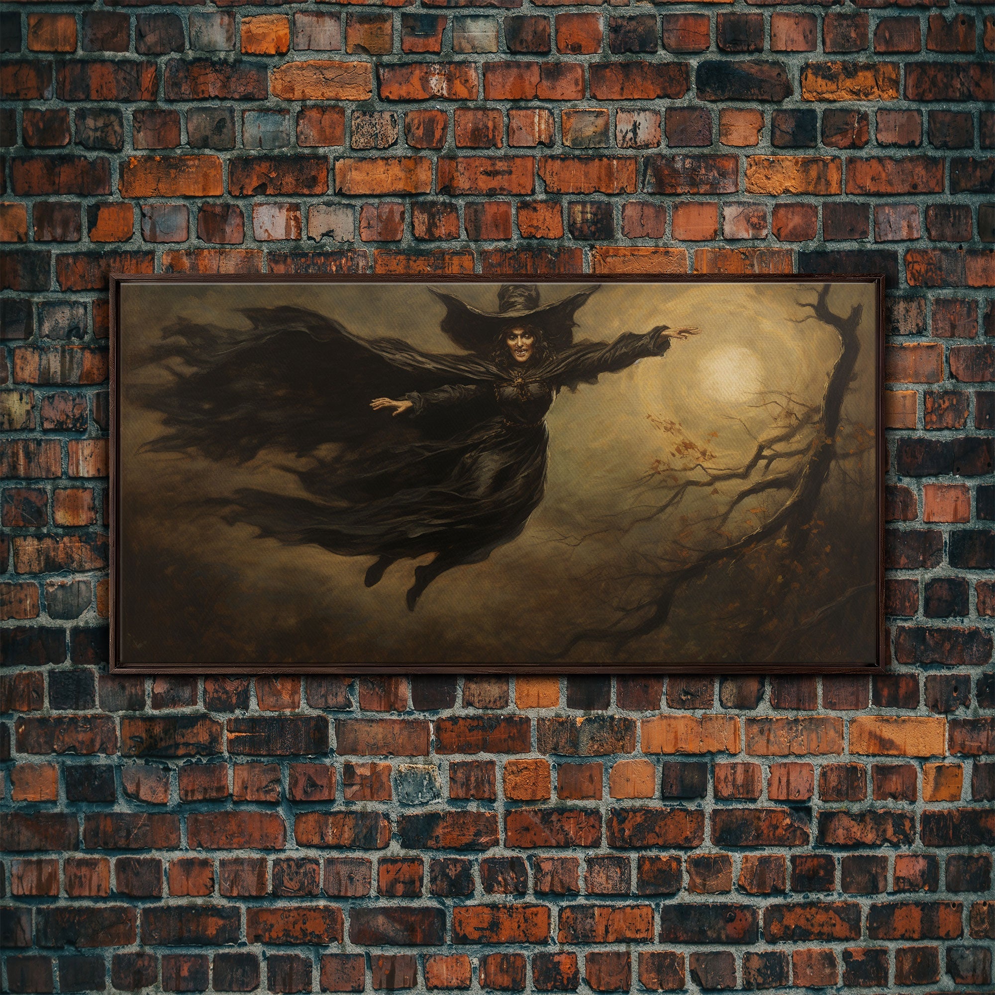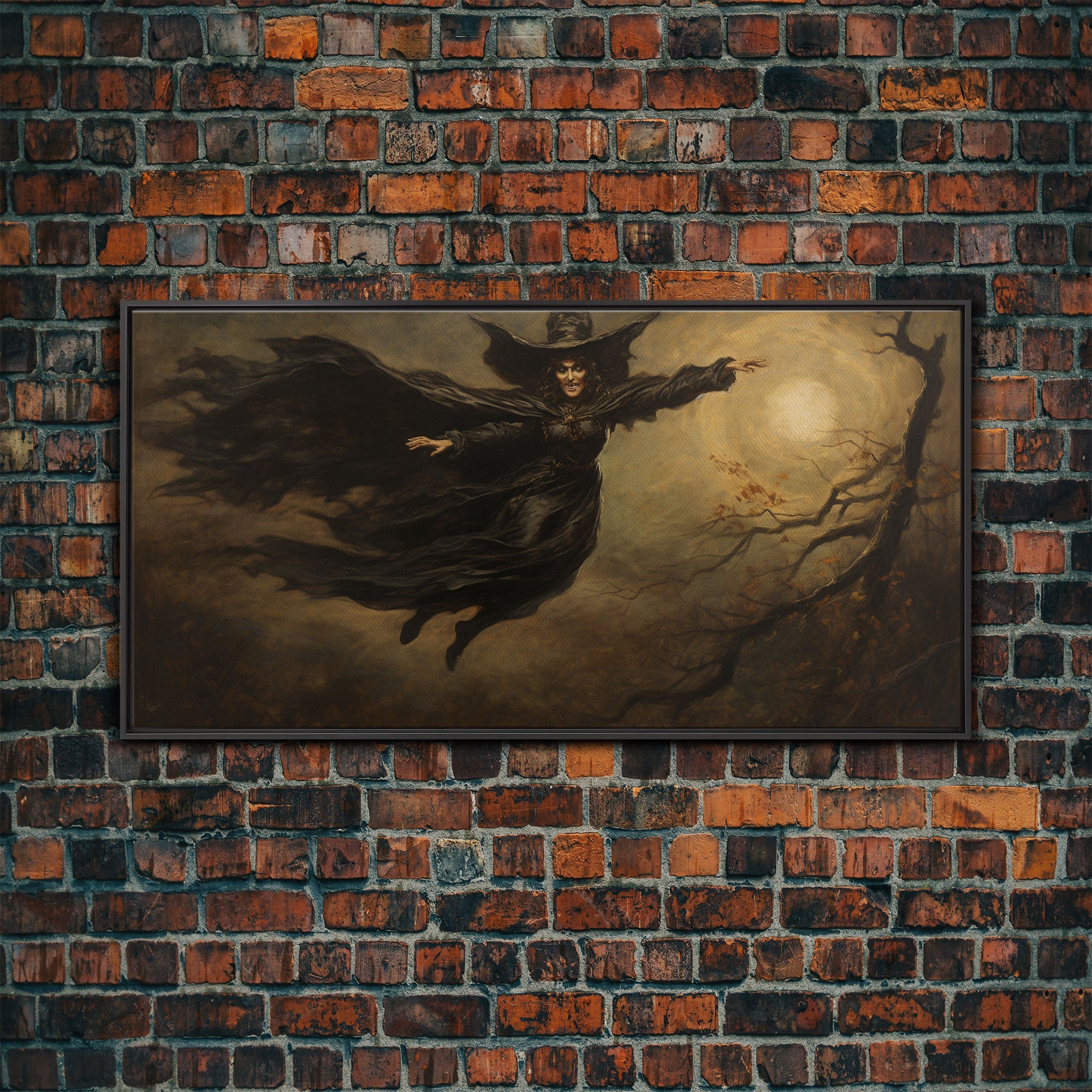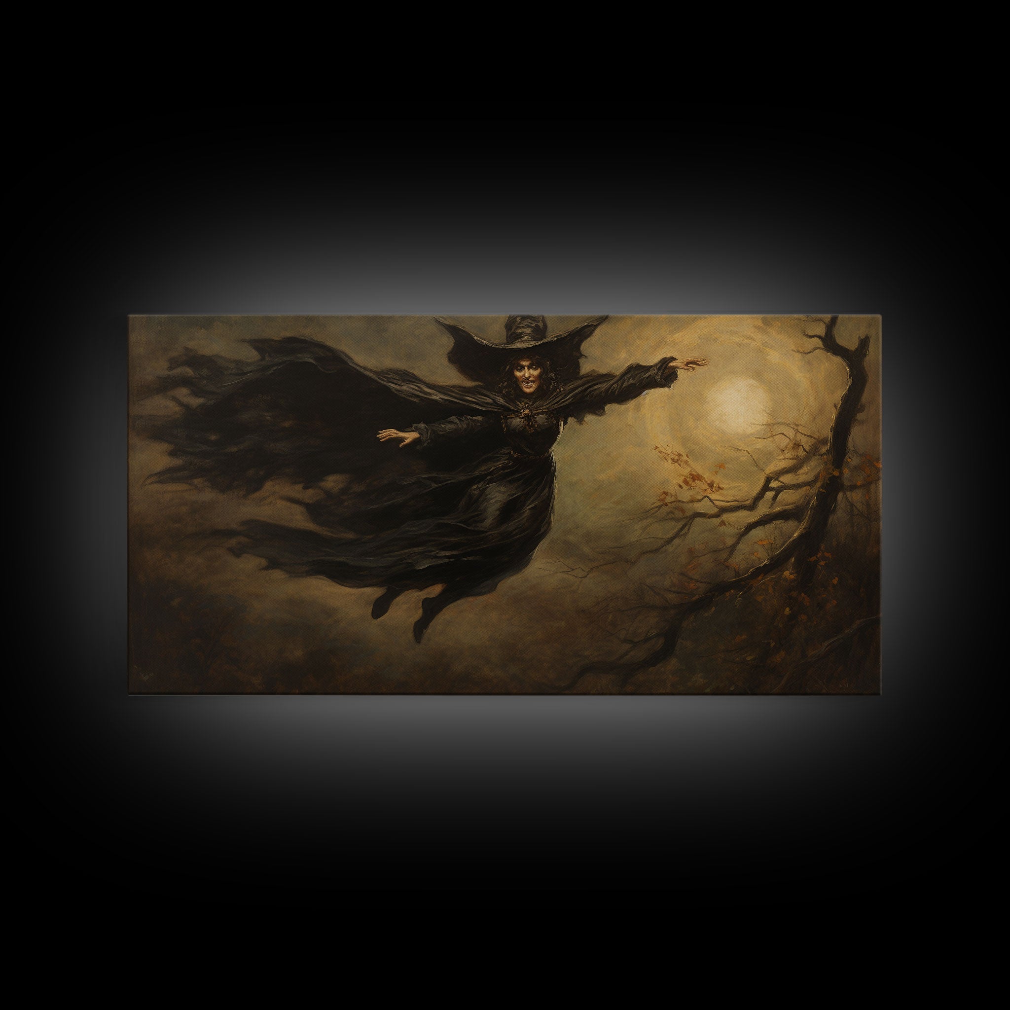 Cool Witch Art, The Flying Witch, Framed Canvas Print, Halloween Wall Art, Horror Prints, Halloween Decoration, Witch Print, Halloween Witch