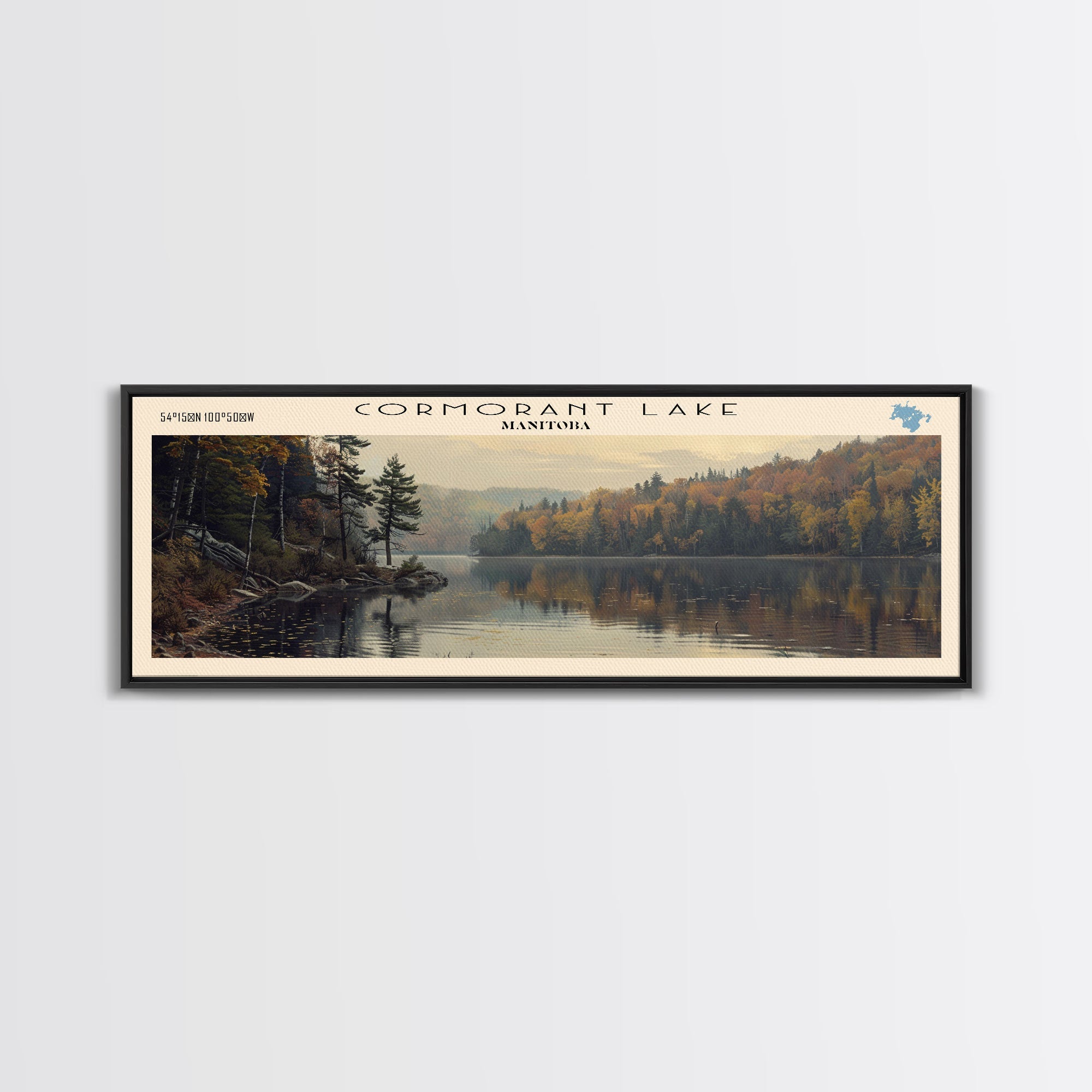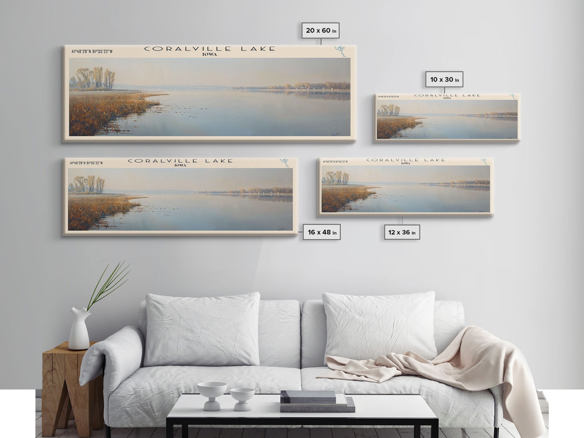 Coralville Lake Iowa Framed Canvas Print, Lake House Art, Panoramic Wide Art, Travel Poster, Modern Lake Painting, Nature Art
