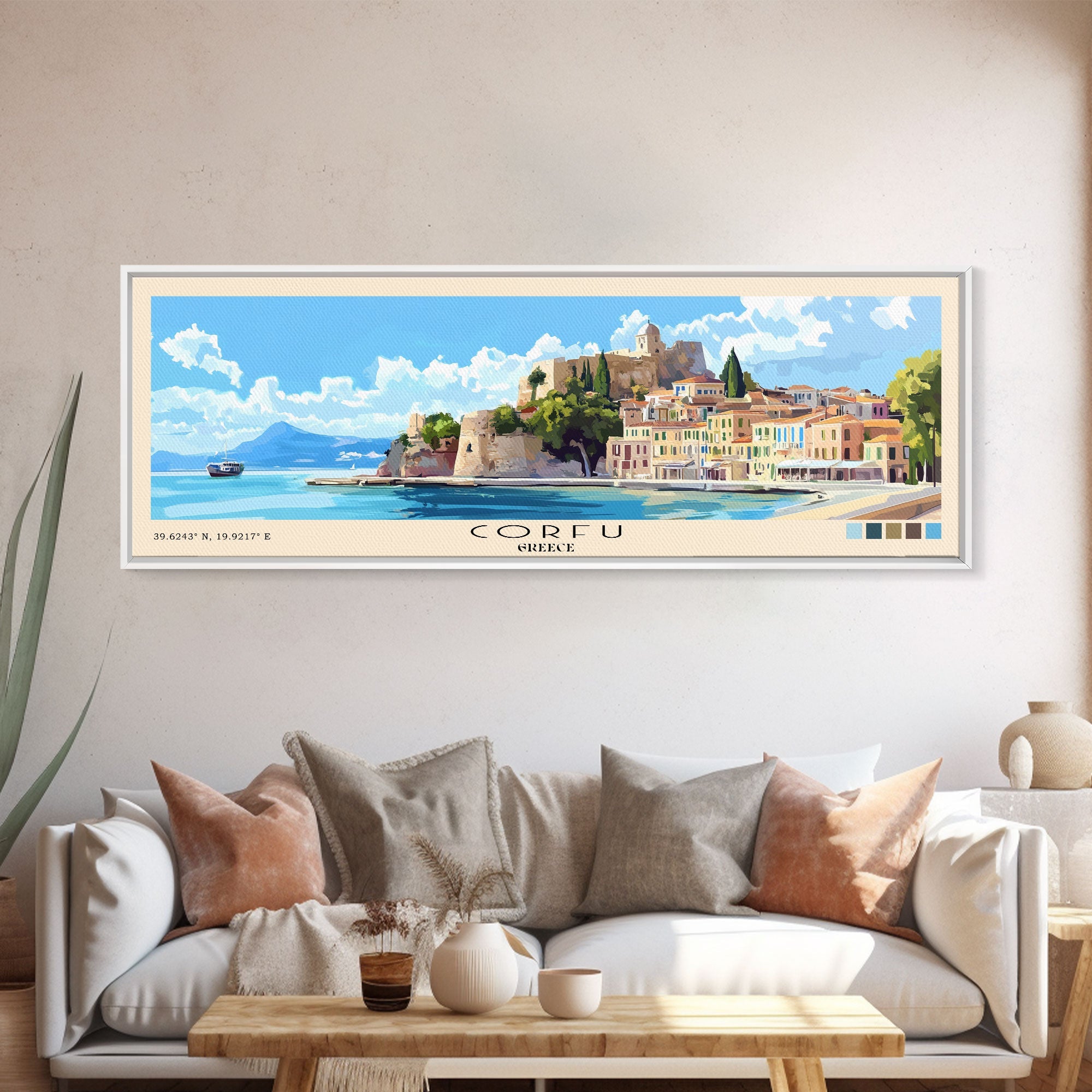 Corfu, Greece Panoramic Print, Vacation Gift, Greece Wall Art, Vacation Wall Art, Vacatation Memories, Beach Decor, Beach Or Lakehouse Art