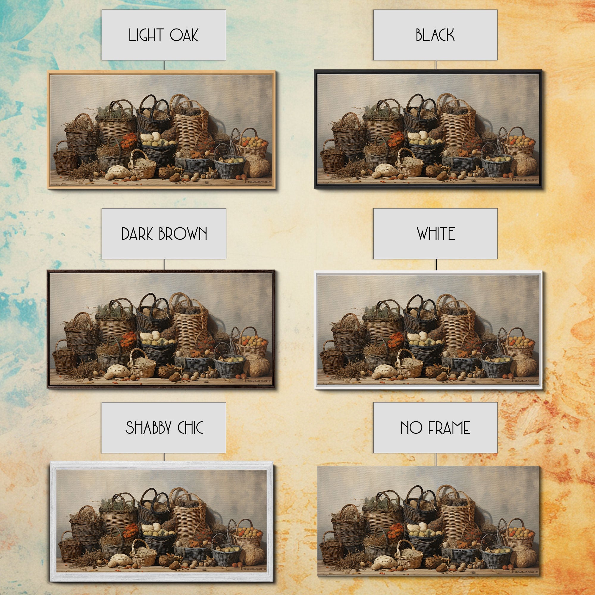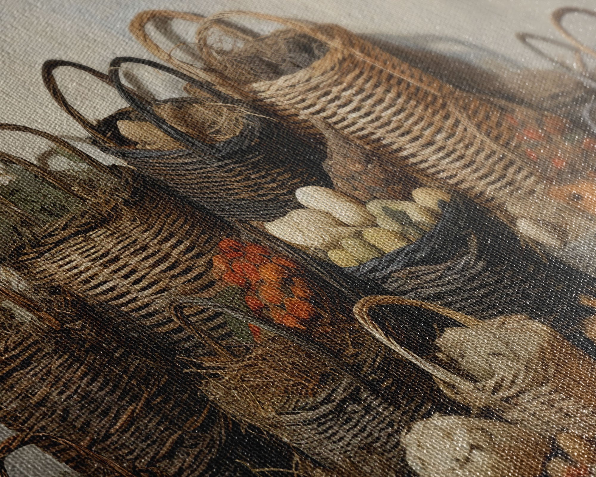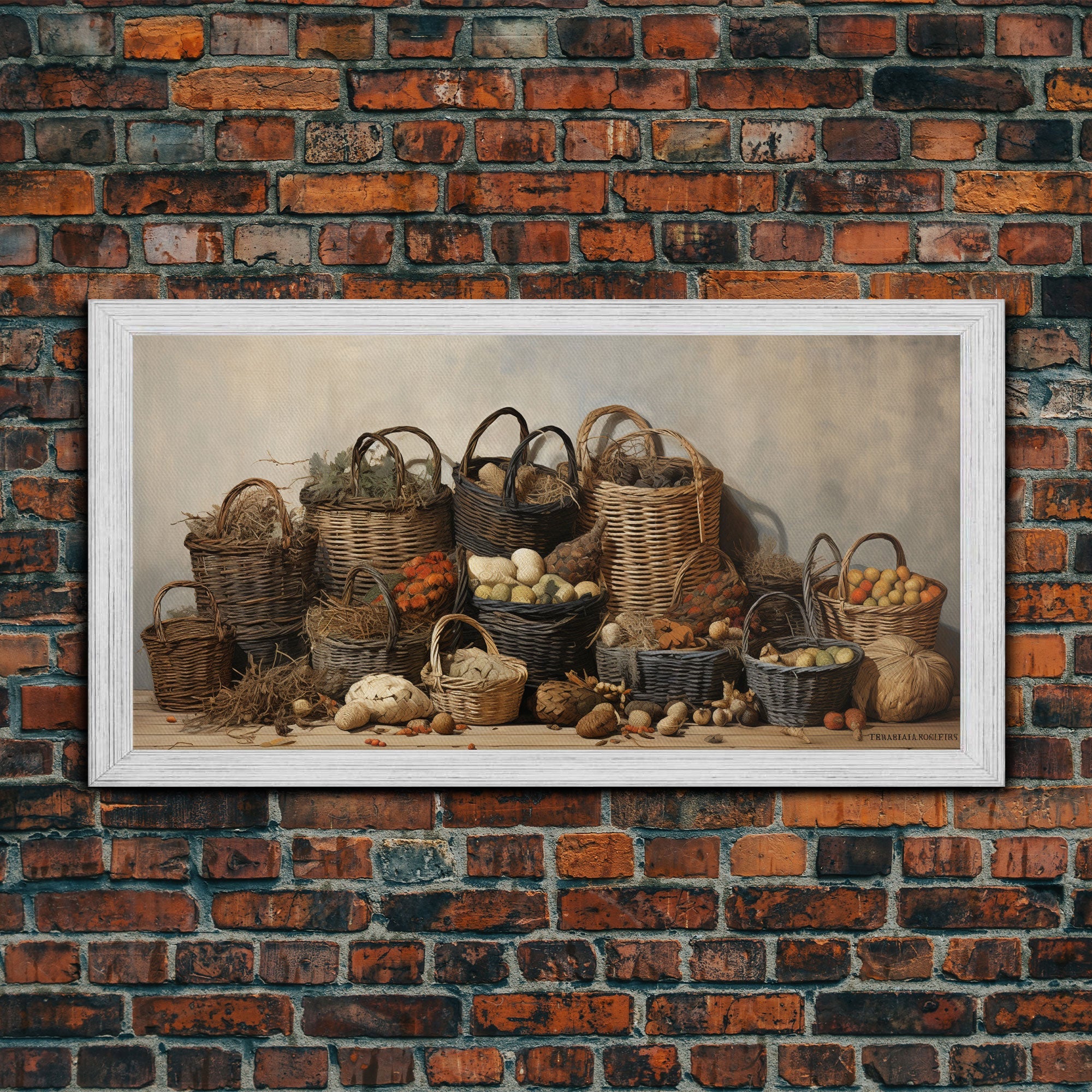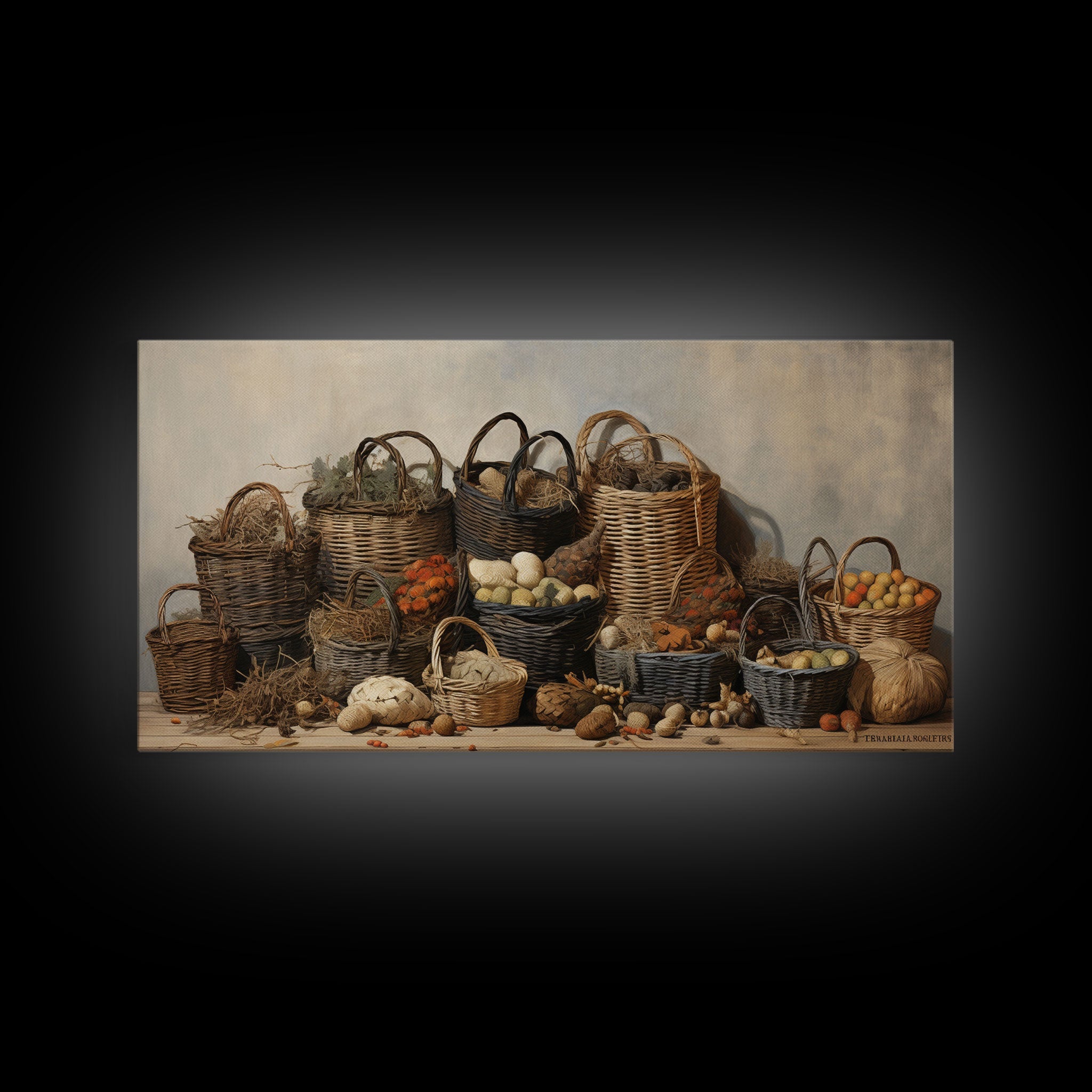 Cornucopia Wall Art, Basket Wall Decor Framed Canvas Print, Boho Wall Art, Wicker Round Bowl Art, Wicker Wall Art Print, Fall Decor