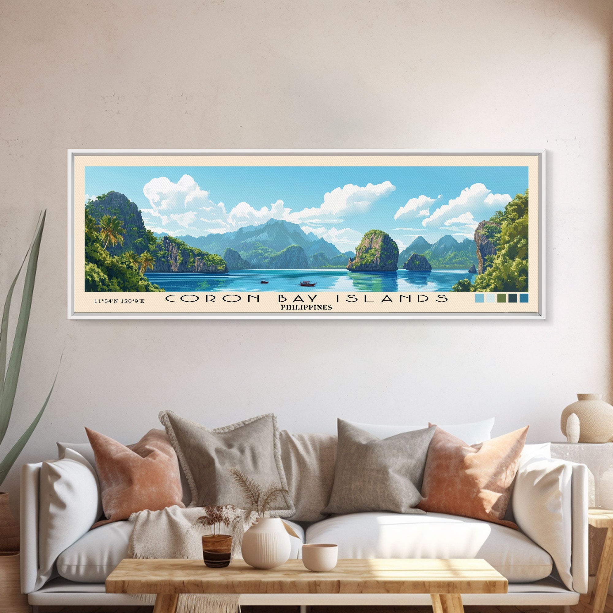 Coron Bay Islands, Philippines Panoramic Beach Print, Vacation Gift, Philippines Wall Art, Framed Canvas Print, Framed Beach Painting