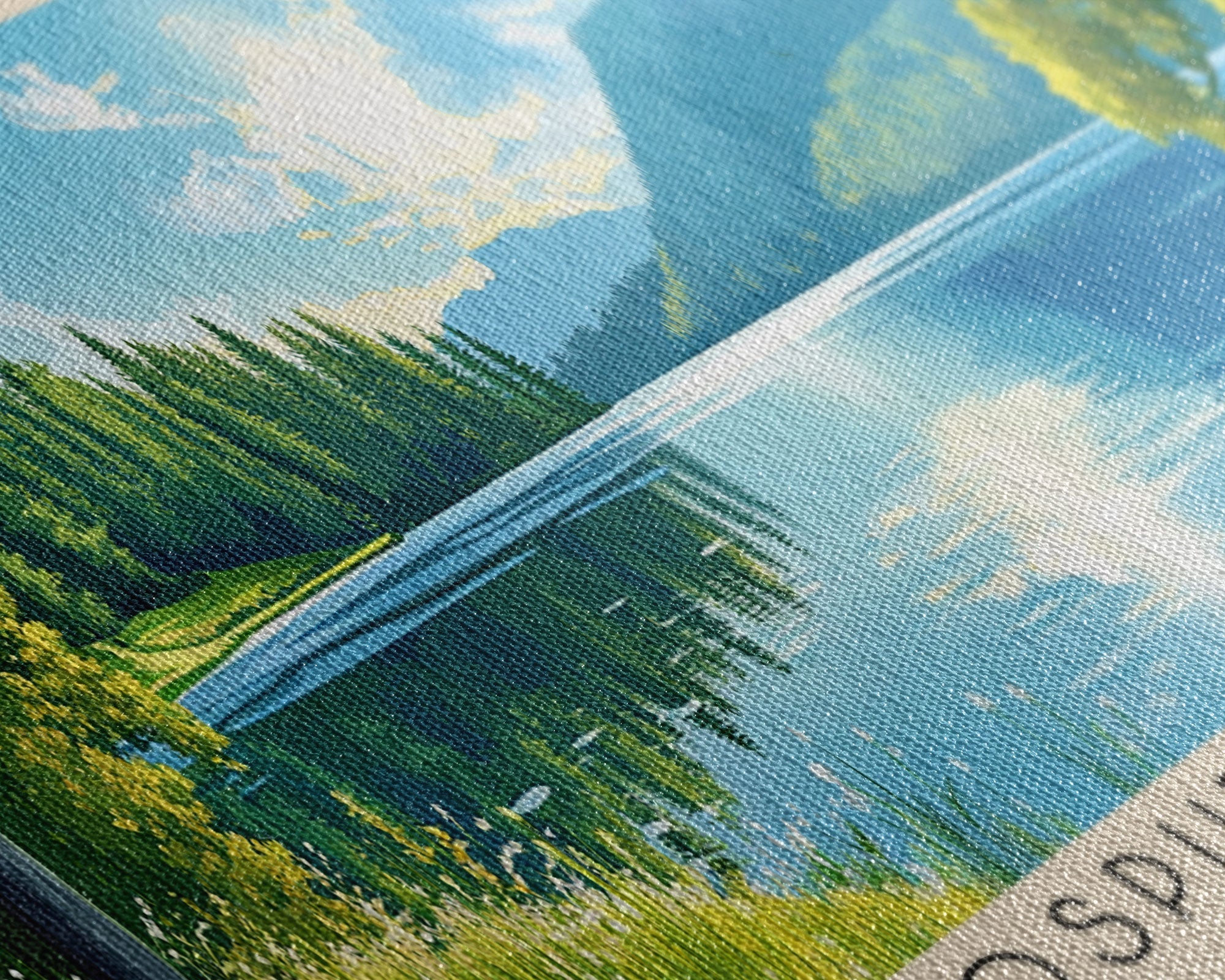 Most of our canvases are made in the USA, with the exception of canvases ordered with the light oak unstained frames, and any large canvases (24x48, 30x60, 16x48 and 20x60) ordered WITH a frame. These are temporarily made in and shipped from Europe, while we try to find a more consistent supplier in the USA.
