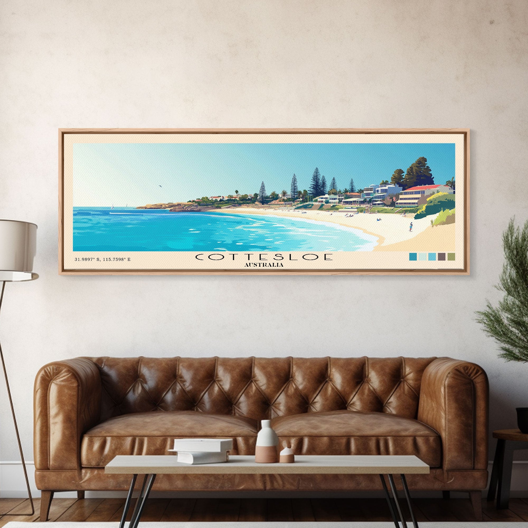 Cottesloe, Australia Panoramic Print, Vacation Gift, Australia Wall Art, Beach Painting, Beach Decor, Large Wall Art, Wood Frame Art