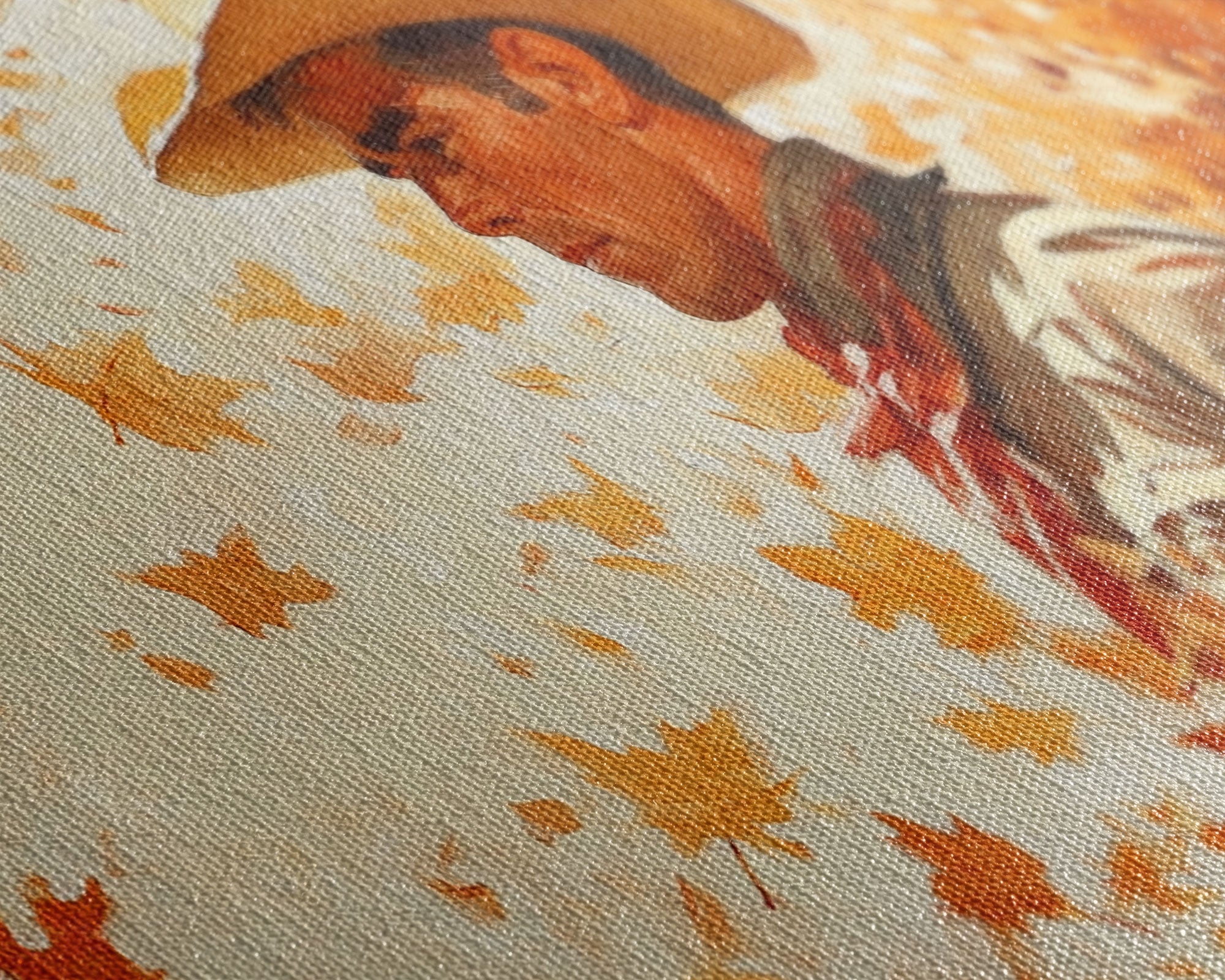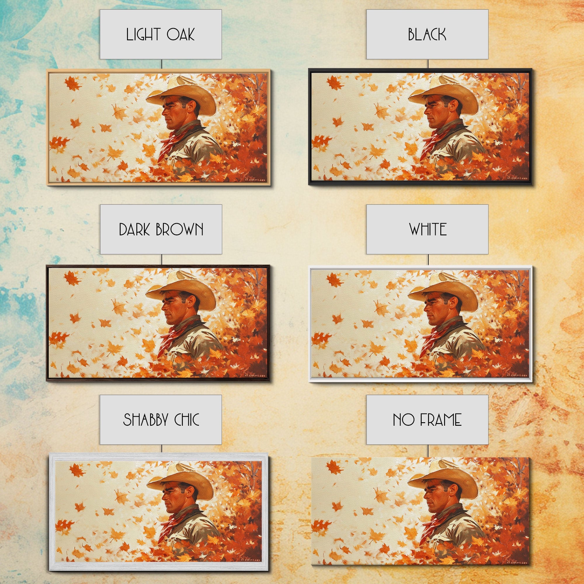 Cowboy and Fall Leaves, Framed Canvas Print Seasonal Wall Art Christmas Cowboy Gift Winter Landscape Wall Decor