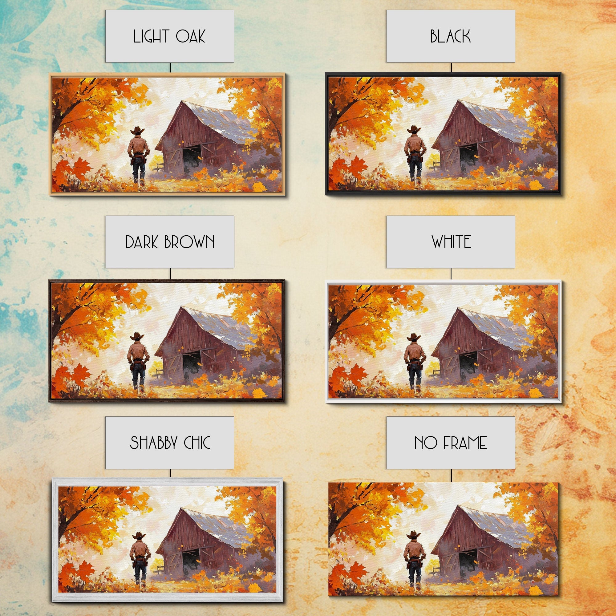 Cowboy and His Barn, Framed Canvas Print, Landscape Art Christmas Cowboy Holiday Art Wall Decor Seasonal