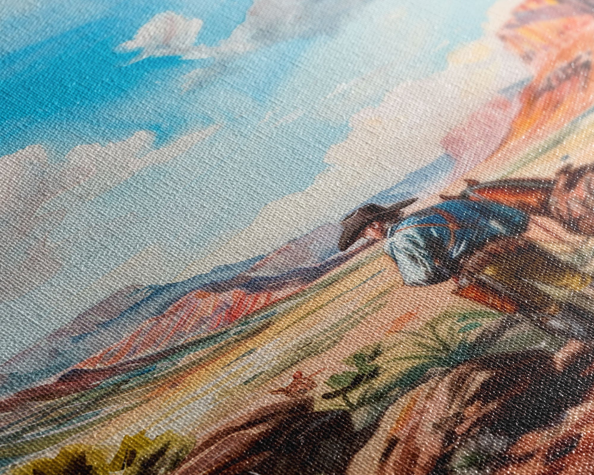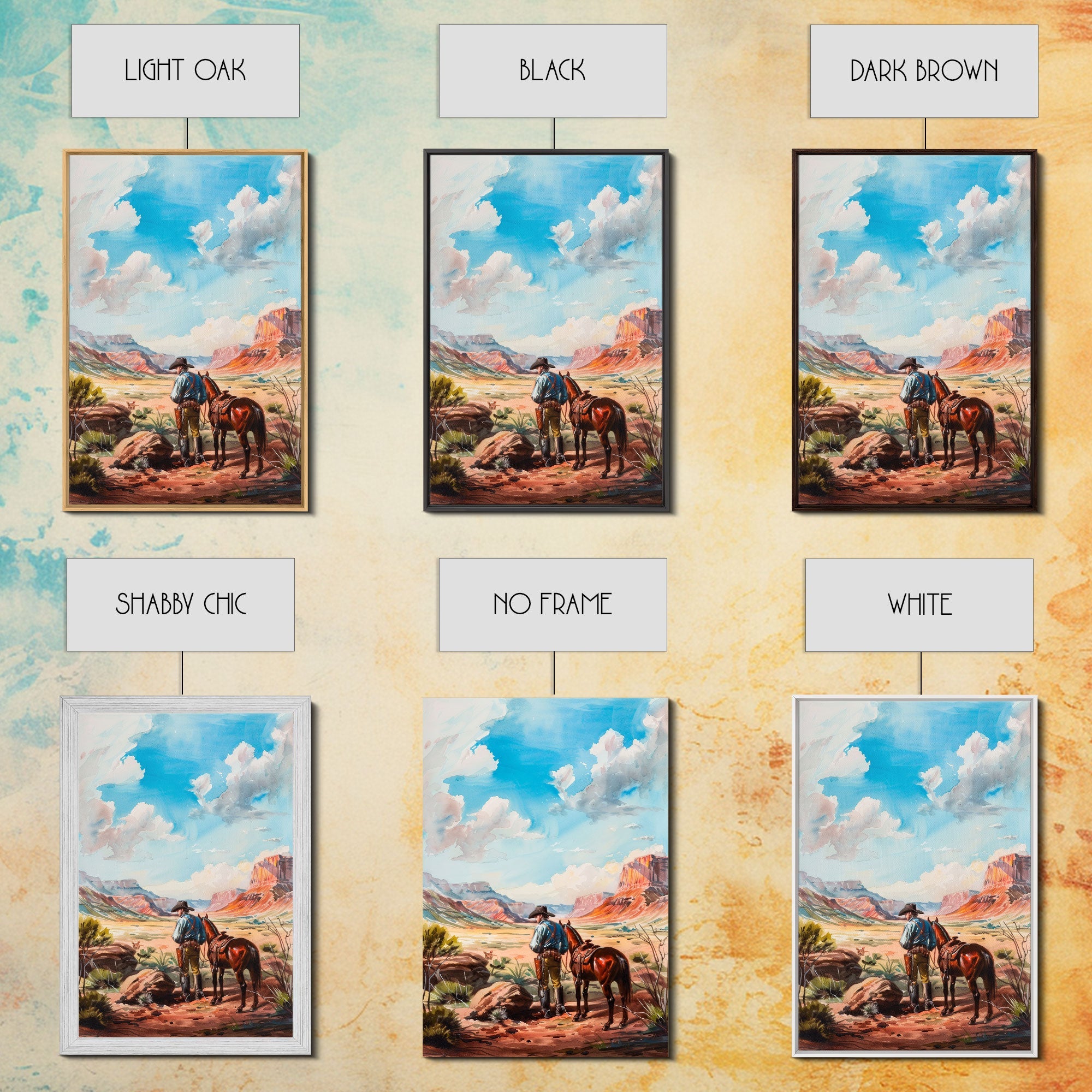 Cowboy and Horse Desert Scene Art - Framed Canvas Print, Western Living Room Decor, Cowboy Wall Art, Desert Home Decoration